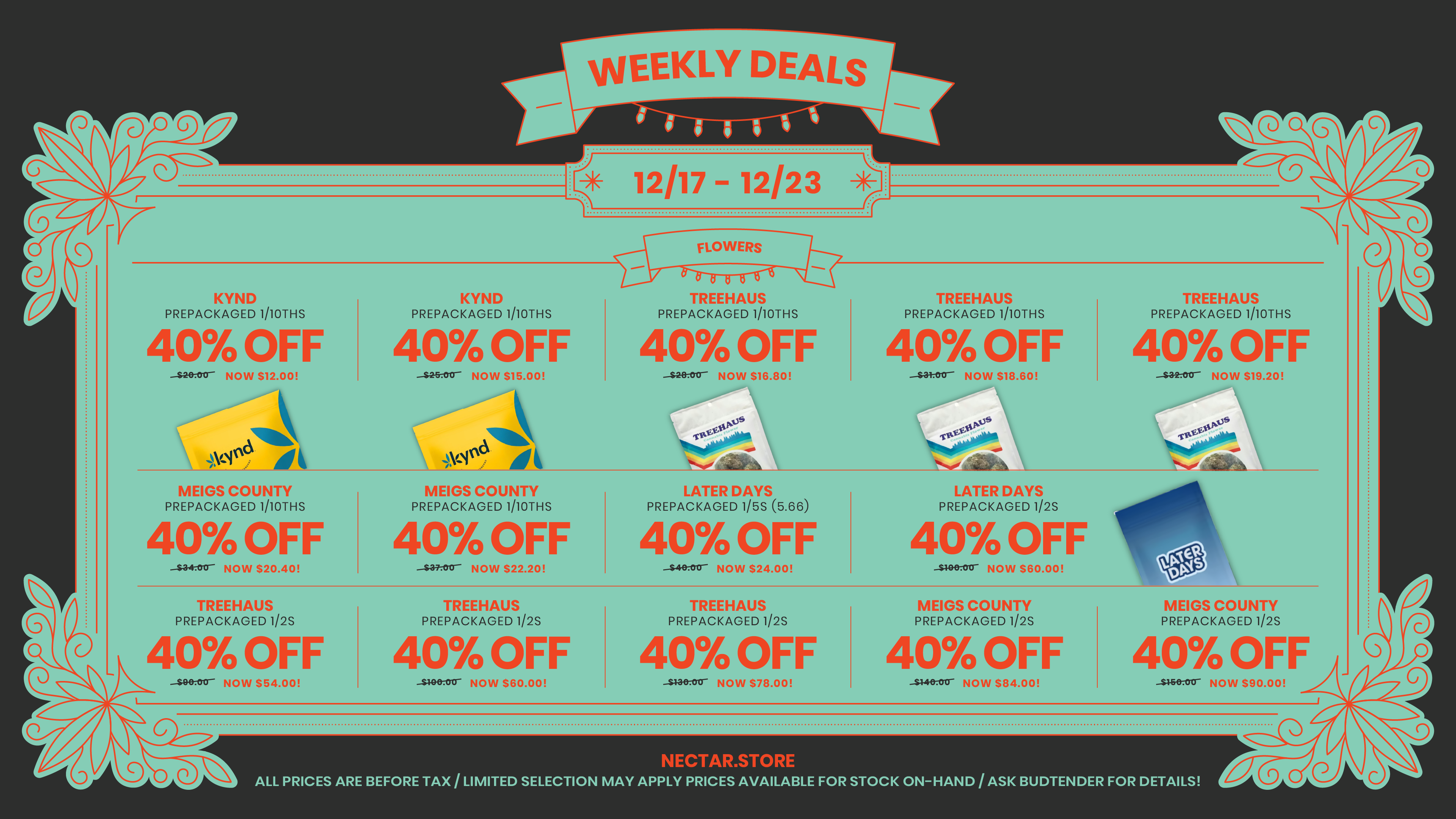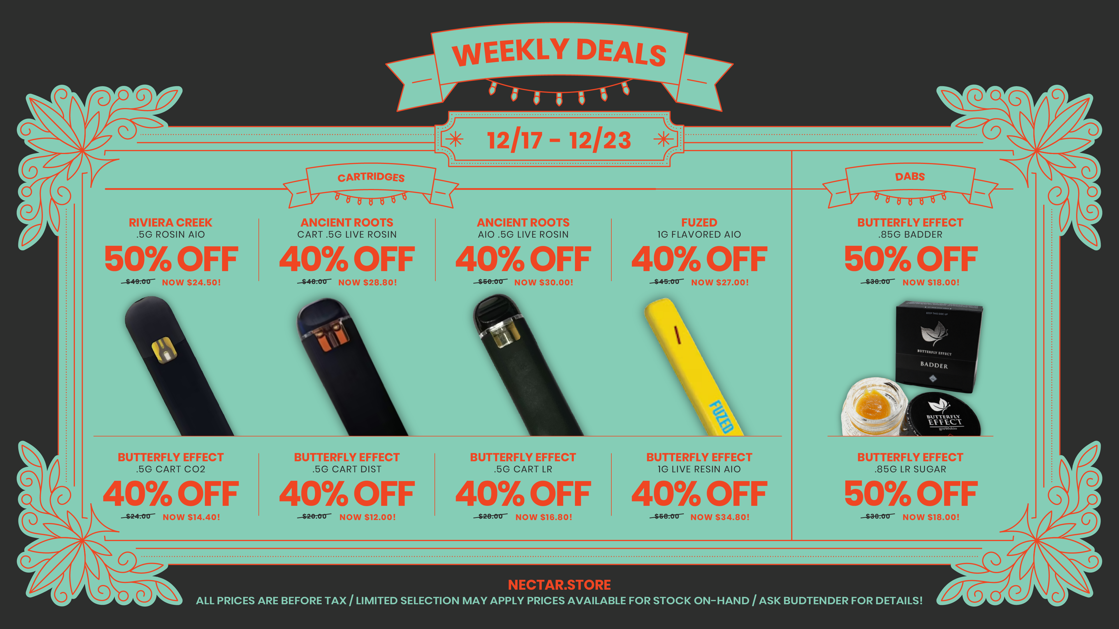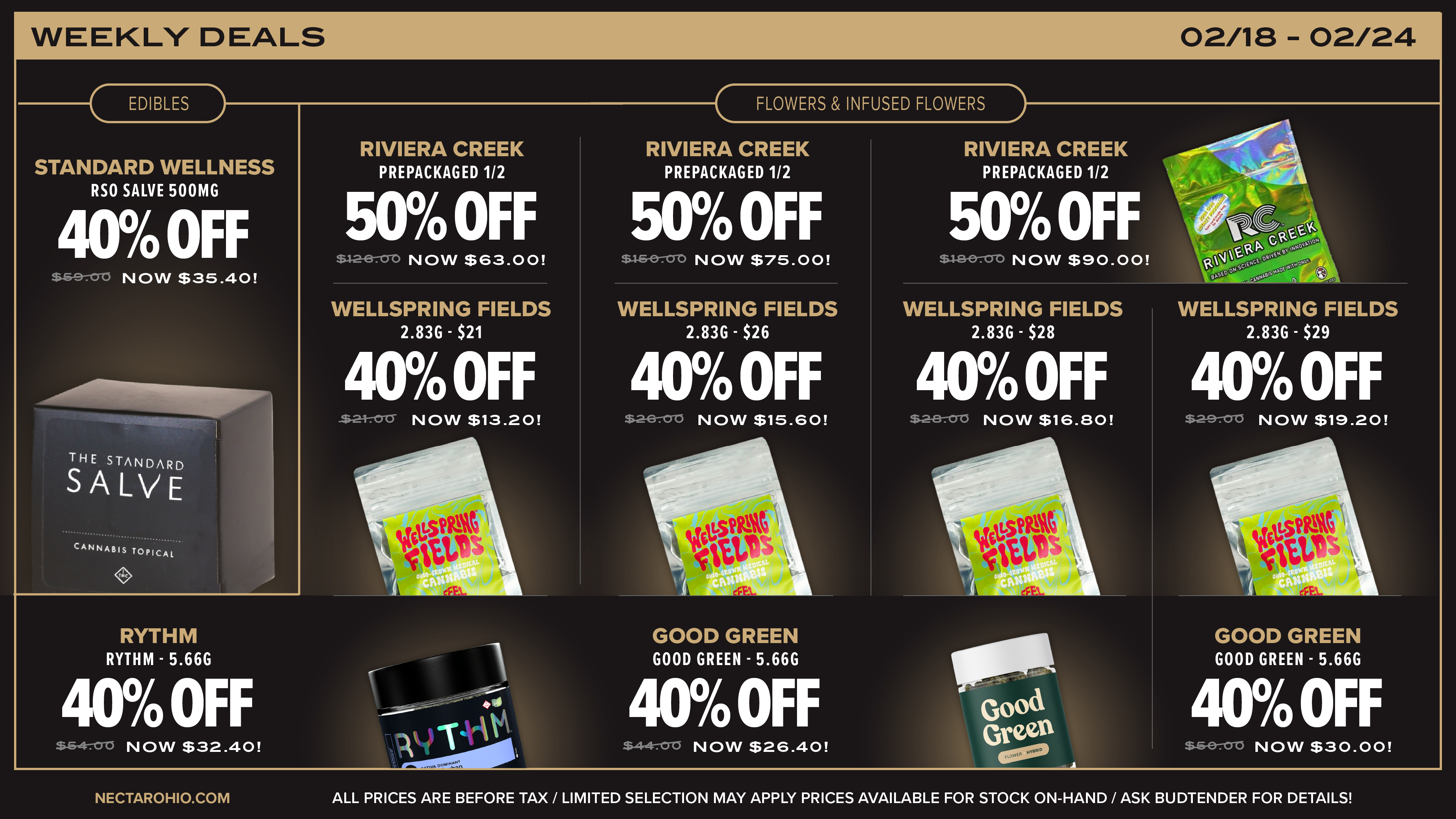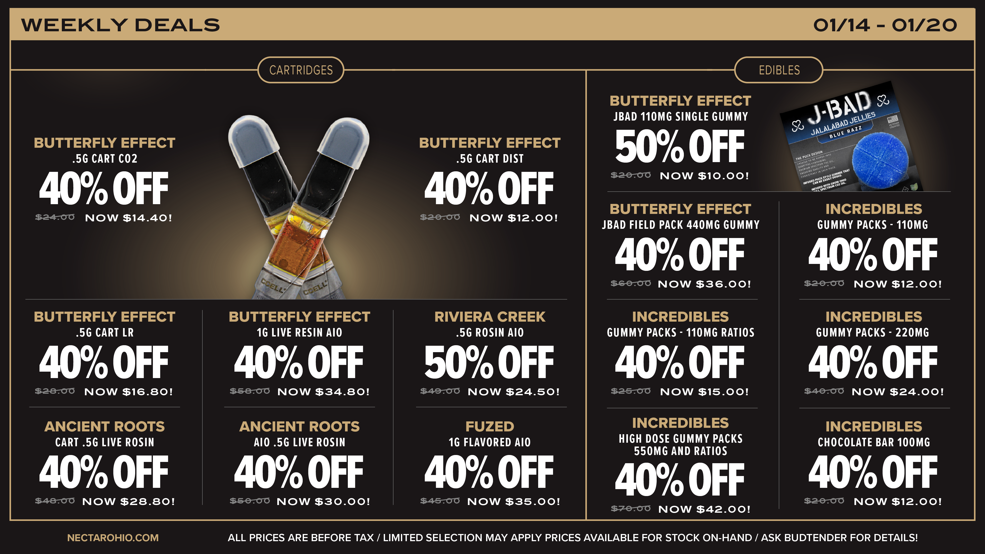 Bowling Green, Harrison, and 5-Mile Rd Cincinnati Dispensary“Check out these deals offered all week long at your local Nectar Medical Cannabis dispensary!” Euclid and Cincinnati Dispensary“Check out these deals offered all week long at your local Nectar Medical Cannabis dispensary!”